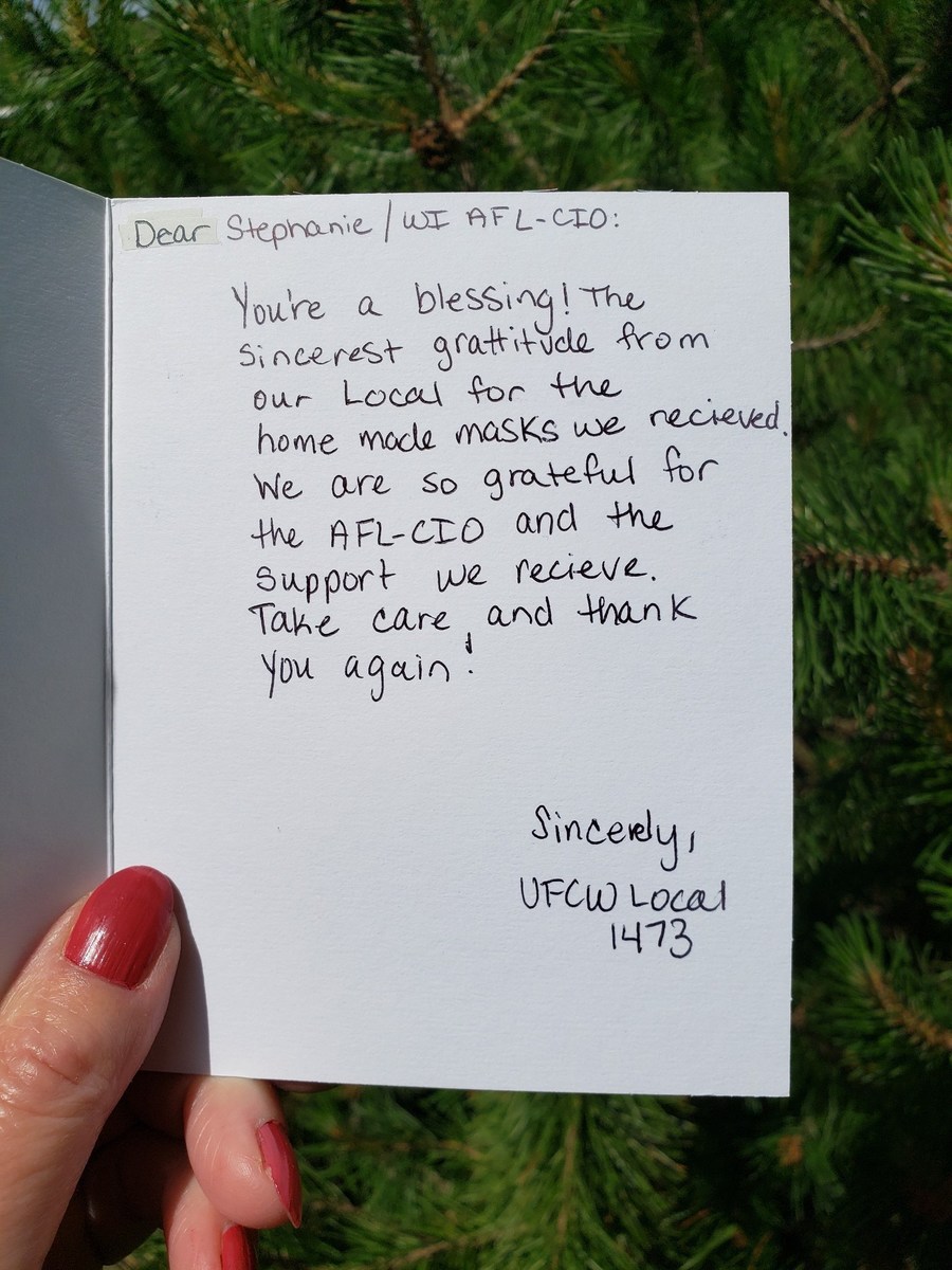 I Want to Join!The dictionary defines solidarity as “unity that produces and is based on shared interests, objectives, and standards.” That’s the spirit that drives the Union Mask Brigade. We’re workers who saw a need and are pitching in to help our fellow workers in the best American can-do tradition.